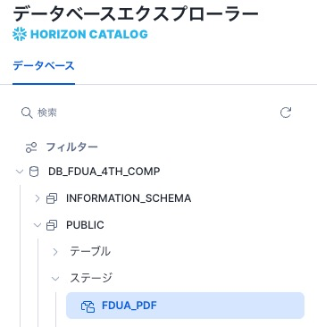 さきほど PDF を配置したステージ環境はディレクトリ構成にしておりますので、複数ファイルを扱うために、DIRECTORY が使えるようになっております。最後の SQL を実行すると、DB_FDUA_4TH_COMP.PUBLIC.EXTRACTED_PDFS にデータが格納されます。