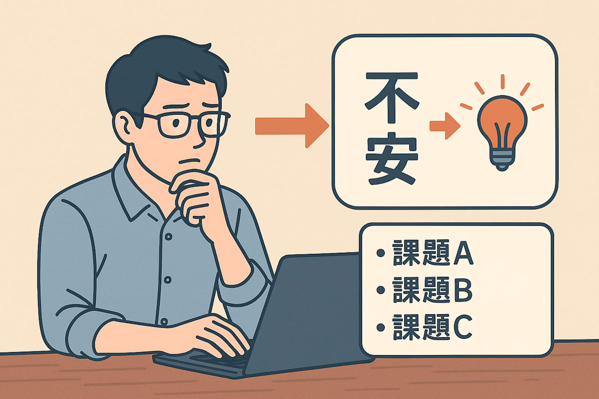 このように言語化することで、不安は具体的な課題として扱えるようになり、解決の糸口が見えてきます。