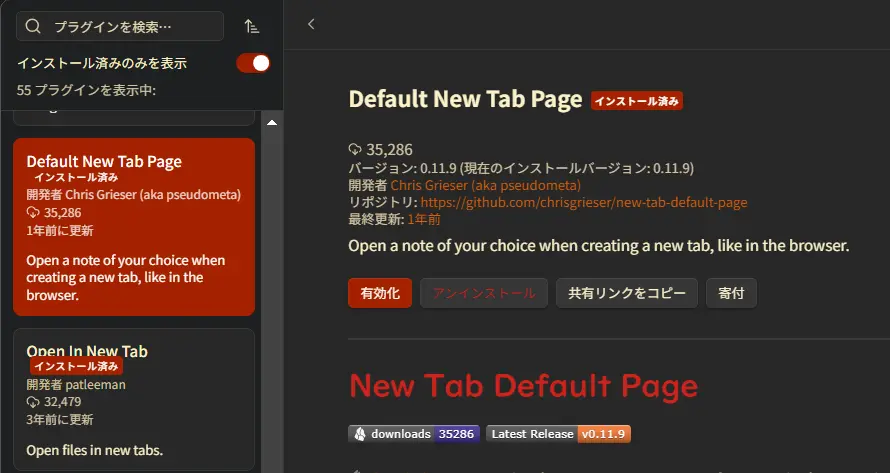 - 中にはリポジトリ名とプラグイン名(リポジトリ名とObsidianの「オプション」->「コミュニティプラグイン」->「閲覧」から検索する名前)が若干異なることもある