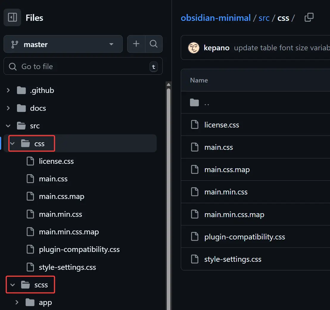 テーマのリポジトリにいくとCSS とSCSS があるが、基本CSSフォルダ配下にあるファイルでいいと思います。