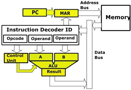 最終的に、MDR内の命令は、メモリからフェッチされたばかりの命令を一時的に保持する働きをするカレント命令レジスタ(CIR)にコピーされる。