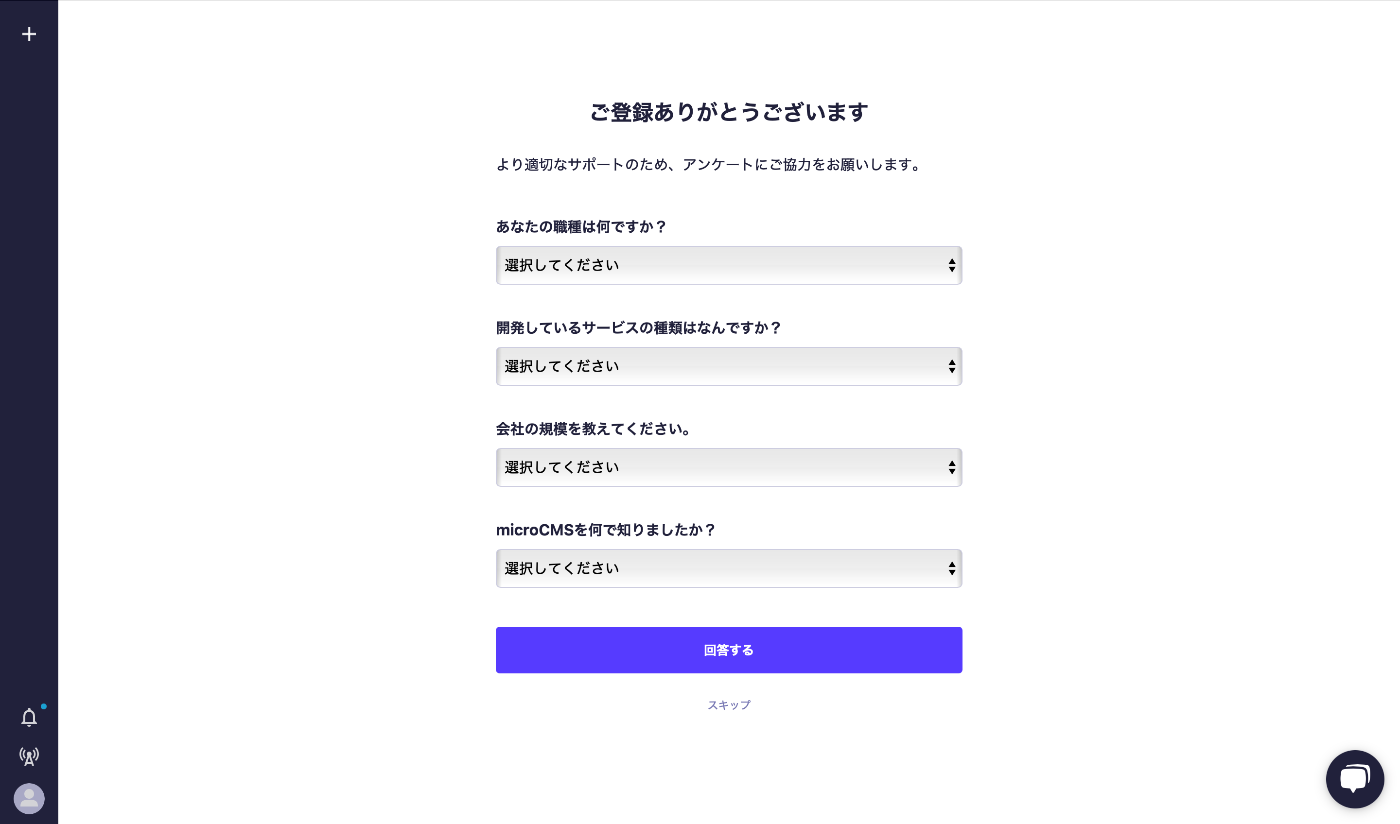 アンケートが表示されますが、これからお世話になるのでできるだけ協力しましょう。