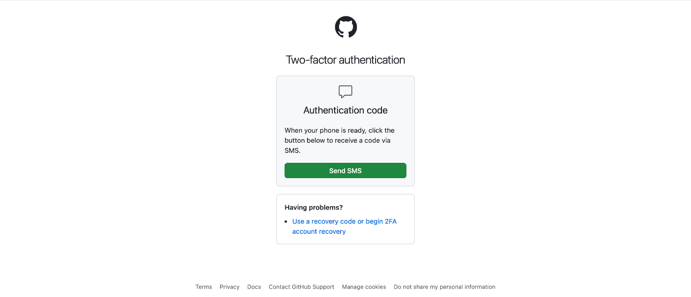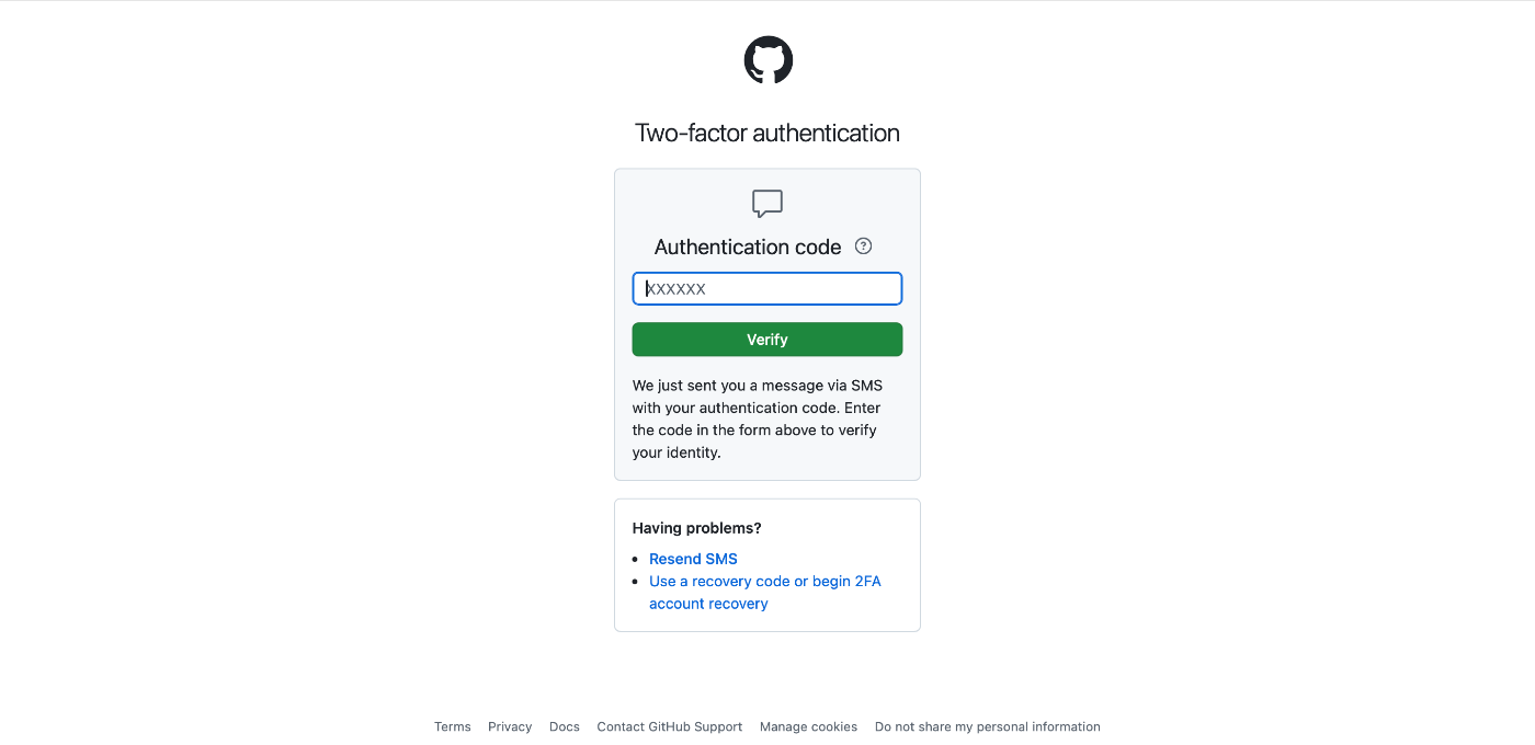 GitHubのemail、passwordを入力すると2段階認証が要求されます。
