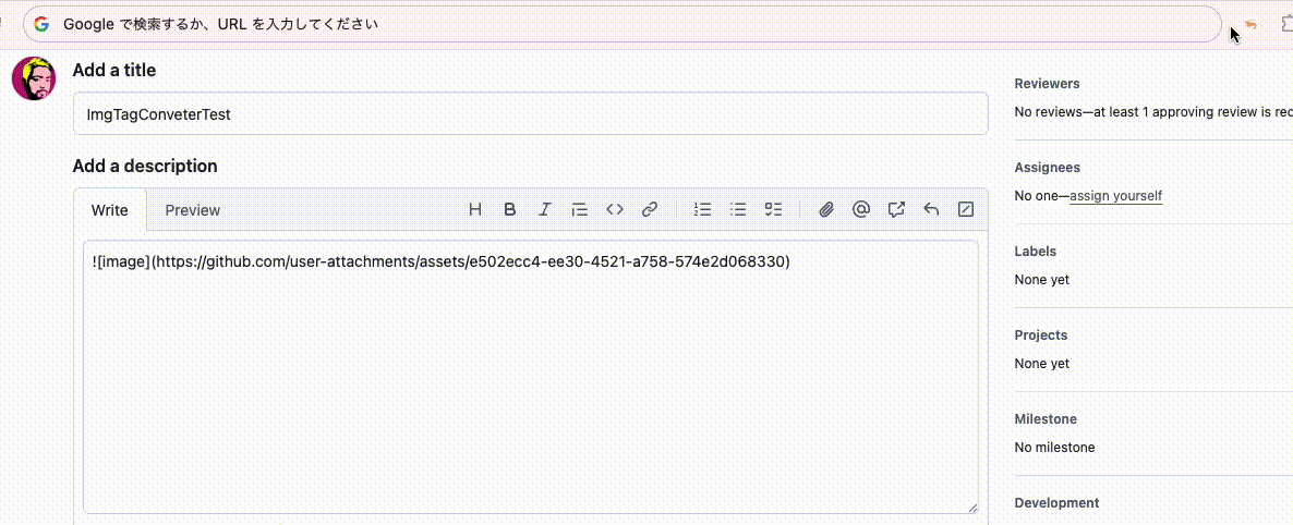 PRのエビデンスを作成する際に愛用していた、ImgConverterが利用不可になってしまい、作業効率が落ちてしまいました。代替サービスも見当たらなかったため、それならもう自分で作ってしまおうと思い、今回拡張機能を実装しました。