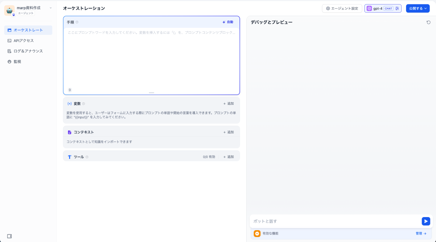 ここから資料作成を行うエージェントを作成していきます。