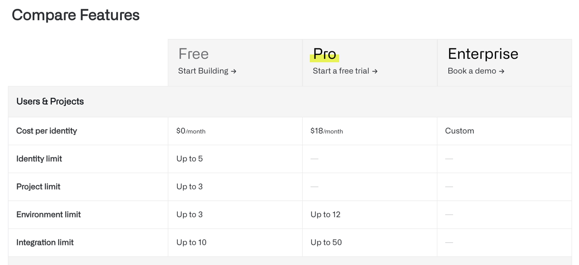 しかし、ローカルでのプロトタイピングでdotenvの代替が目的であれば、クラウド版のFreeプランでも十分に利用が可能です。クラウドのFreeプランではチームメンバーは5人まで。Projectは3つまで。プロジェクト毎に設定できるEnvironmentが3つまで設定できます。