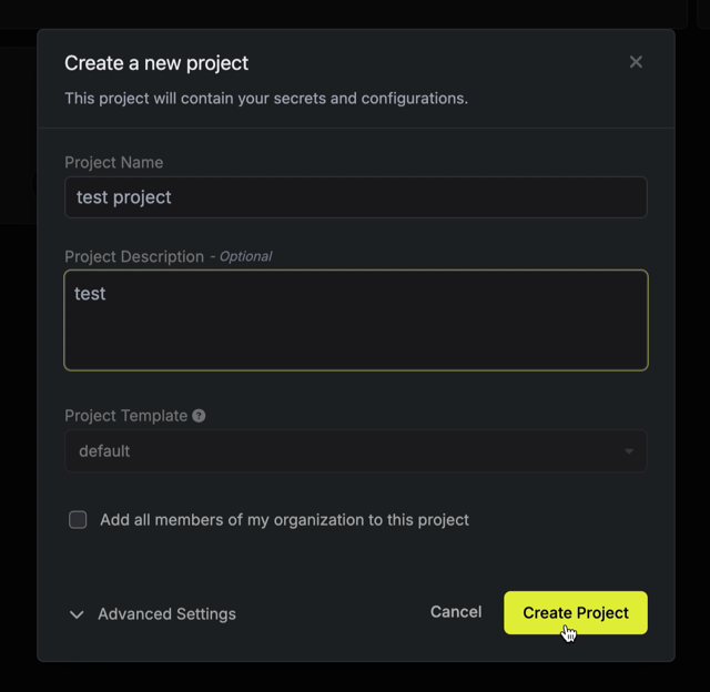 シークレットはプロジェクト単位で管理します。最初にプロジェクトを作成してください。