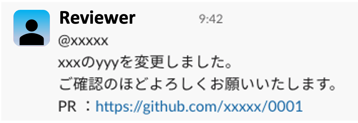 例えば、SlackやChatworkなどGithubとは異なるツールにてレビューを依頼する際。