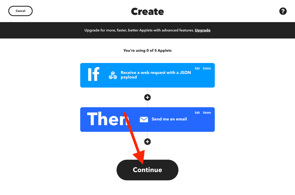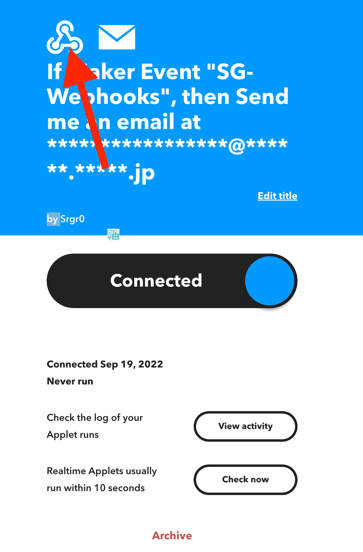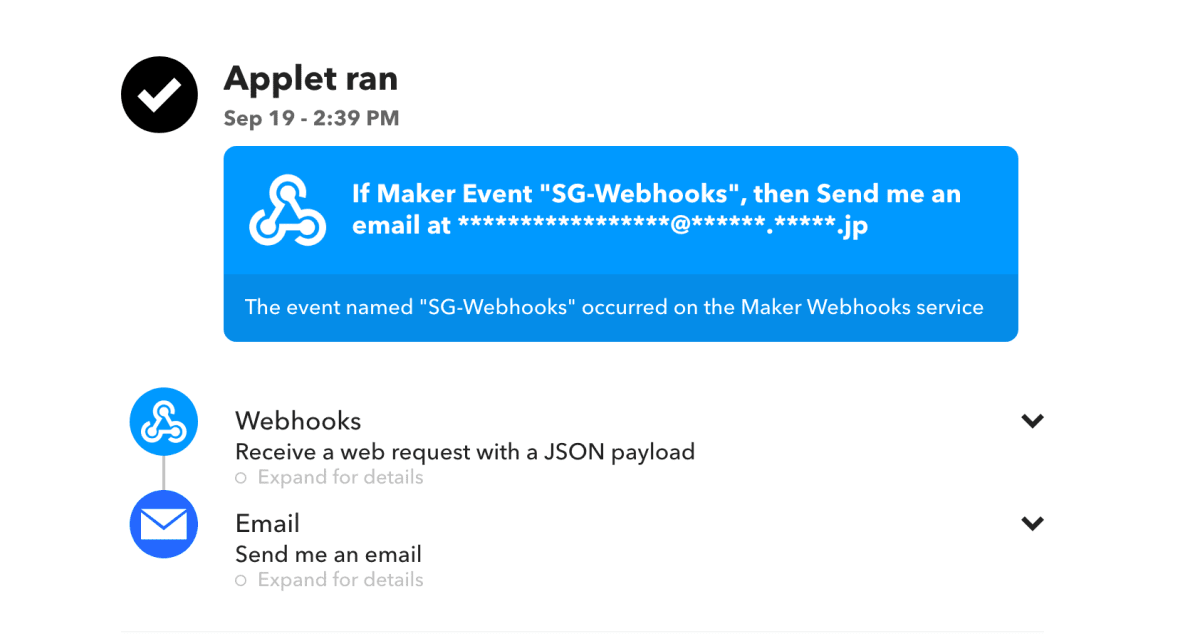 今回はIFTTTでWebhookを受信し、メールで通知を受け取るようにしました。