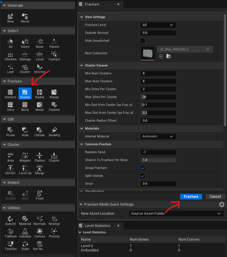 M_Brick_Clay_Beveledを設定。 - Fracture Mode を選択する。