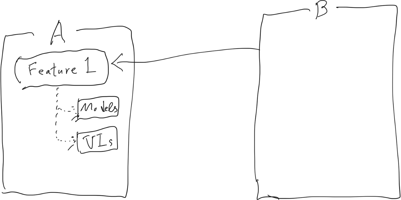 なので現実的にやるのであれば、アプリBの中にFeatureAの機能を隠蔽するようなモジュールが必要となります。