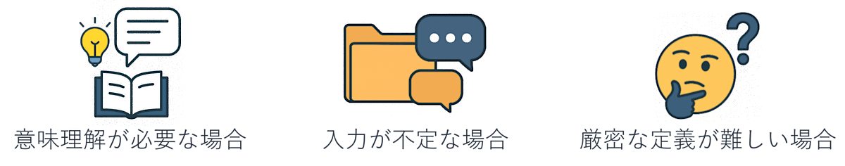 さらに、曖昧さを含んだ感情分類のように、厳密な定義が難しいタスクにも向いています。人間的な解釈をそのままプロンプトで与えられるため、柔軟に判定を行える点は大きな利点です。