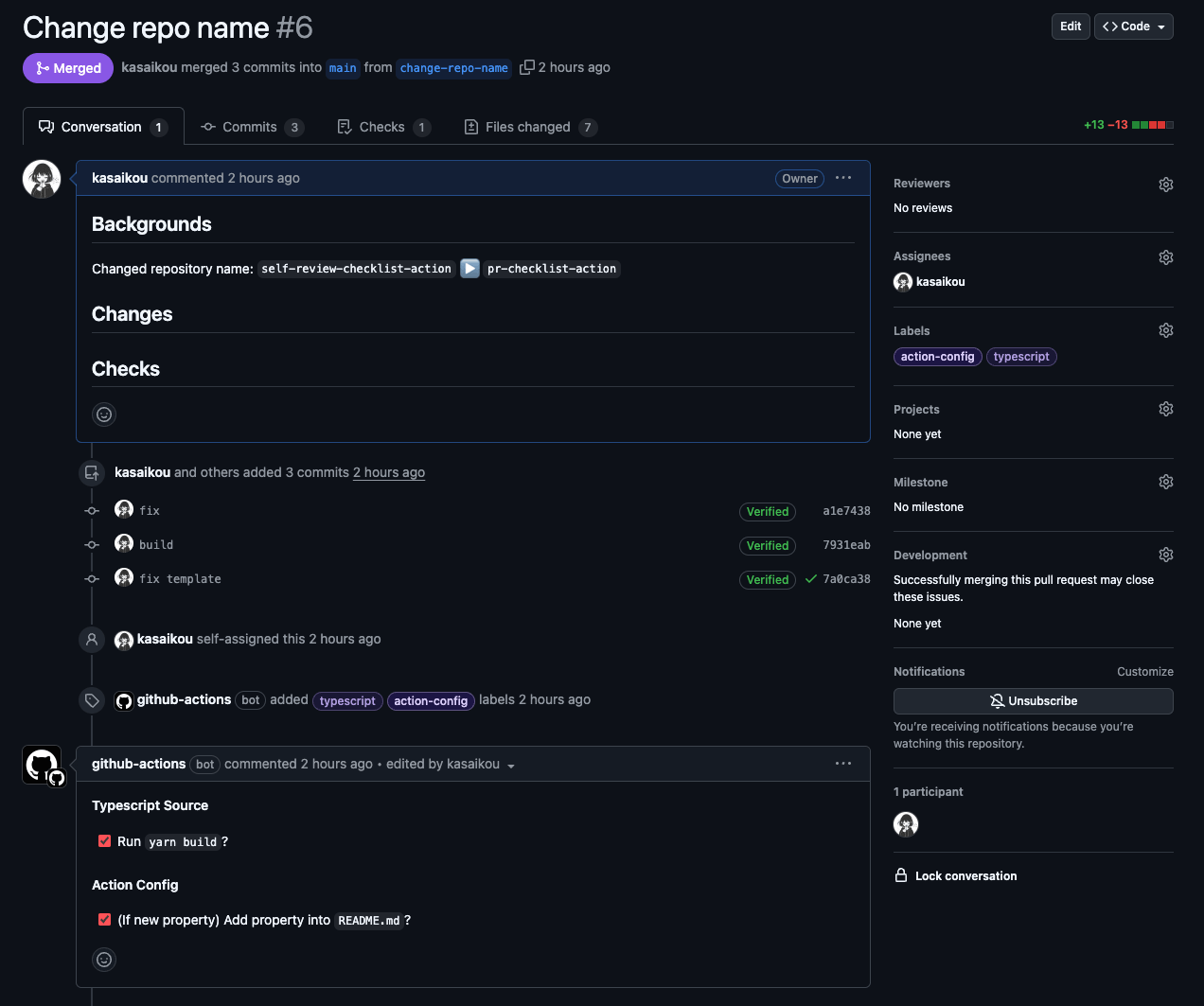 actions/labelerと併用することでラベル設定のめんどくささはactions/labelerが解決するから、それに相乗りするだけでいいよ - 基本的にはチェックリスト用のコメントが作成されるけれど、少しテンプレートを変更することで今までのプルリクエストテンプレートっぽいチェックリストを作成することもできるよ