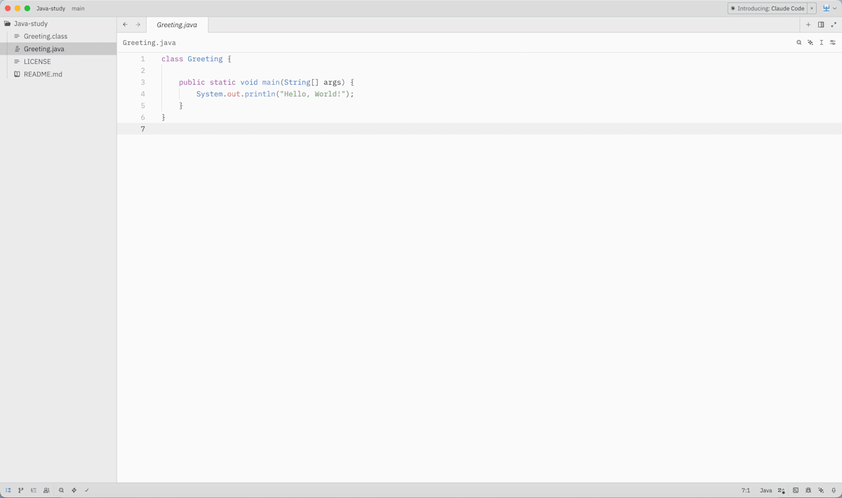 そしてみていただくとわかると思いますが、サイドのバーにGreeting.classというものが追加されていると思います。