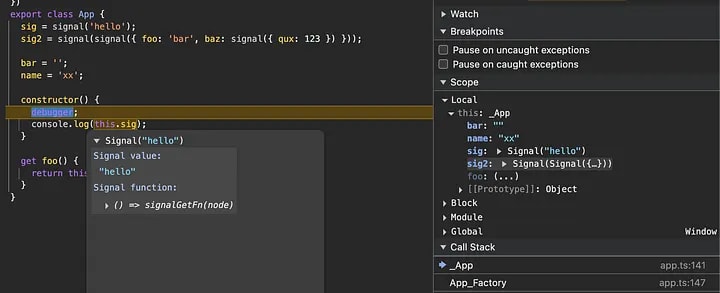 signals用のビルトインフォーマッタが組み込まれたとのことです。ChromeやFirefoxなどのブラウザでカスタムフォーマッタを有効にすれば、デバッグ時にsignalsの中身をより分かりやすく確認できるようになります。