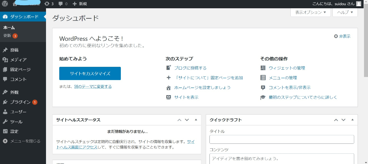 設定完了!WordPressの管理画面になった。