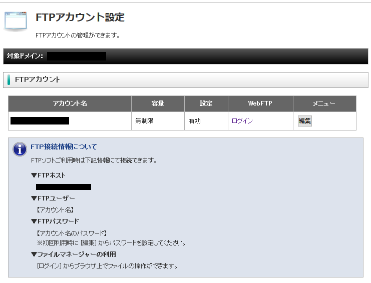 xfreeだとブラウザでの設定画面のFTPアカウント設定というところでログインに必要な情報が見れます。
