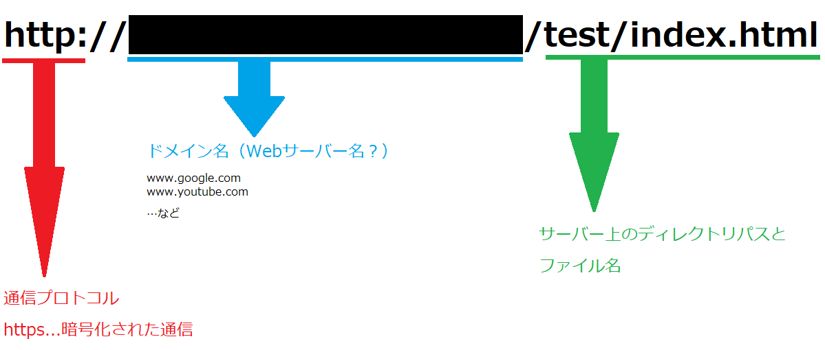 | Webサーバー | Webページをインターネット上に公開するのに必要な物である。Webページを見る時にブラウザを使うが、そのブラウザの要求(リクエスト)に対して、Webサーバー上のWebサイト表示に必要なファイル(html、css、画像など…)をブラウザに送信(レスポンス)する |
