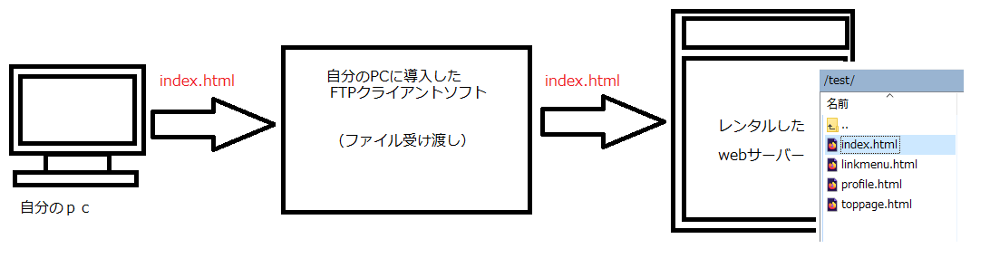 4.FTPクライアントソフトとWebサーバーが繋がったら、適当に作ったhtmlファイルをWebサーバーにぶん投げる。