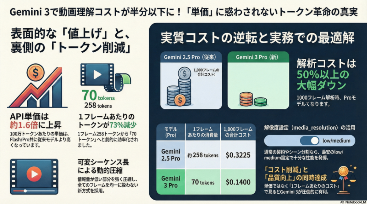 【Gemini 3】API単価だけ見てると損する。動画理解コストが1/2になる話