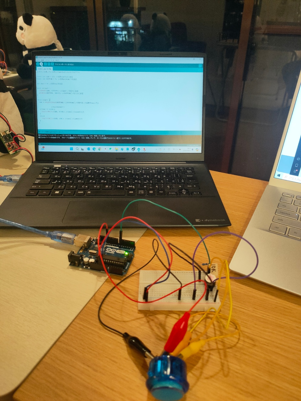 なお、上述の配線とソースコードは、「2. LED常時OFFで、押した時のみ点灯&機能ON」のものです。
