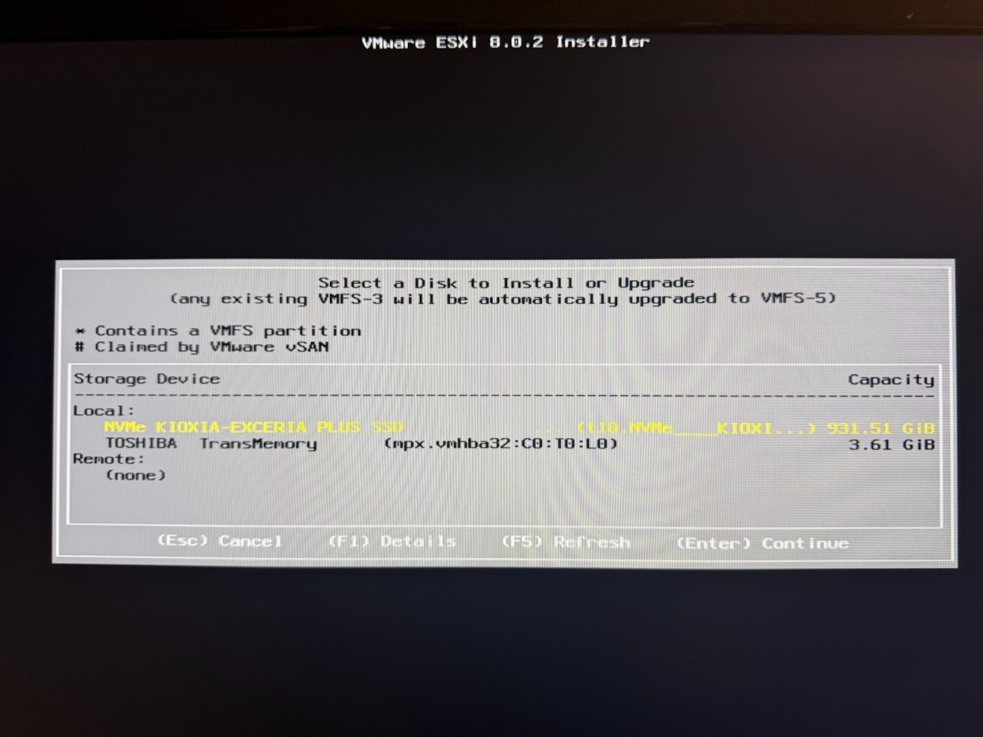 ESXi8のインストール(必要なもの#1導入するミニPCで作業)