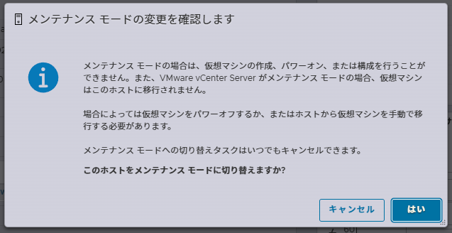[ホスト]-->[アクション]-->[メンテナンスモードへの切り替え]をクリックする
