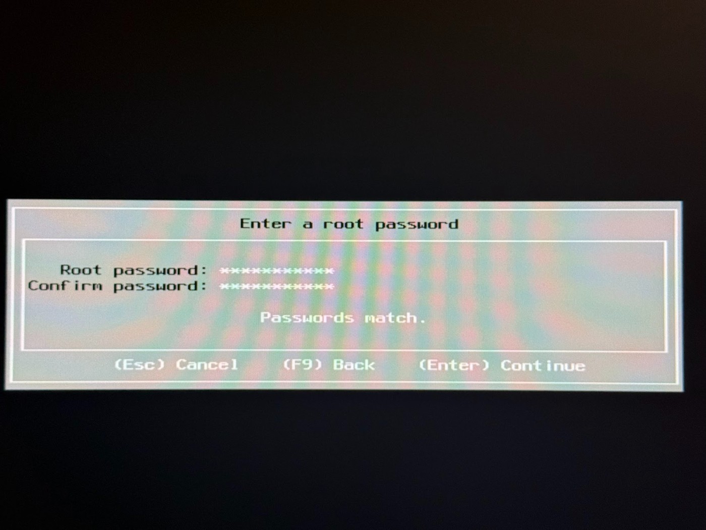 パスワードを2回入力する※先ほどキーボードレイアウトを日本語に設定したが、黄色いログイン画面ではなぜかUS配列になる事象に過去遭遇したことがあるので@等をパスワードに含めるのは注意しておいたほうが良い。
