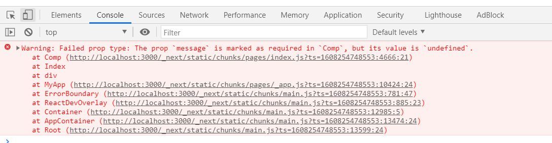 もし、チェックに違反して親コンポーネントからmessageが渡ってきてない場合、JavaScriptのコンソールにエラーメッセージが表示されます。
