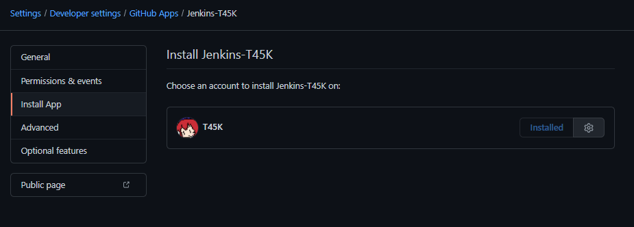 - Jenkins上で、作成したGitHub Appの設定をする。