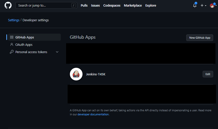 GitHub Appsで新しいAppを作成したうえで、そのApp経由でGitHubとJenkinsの連携を行う。