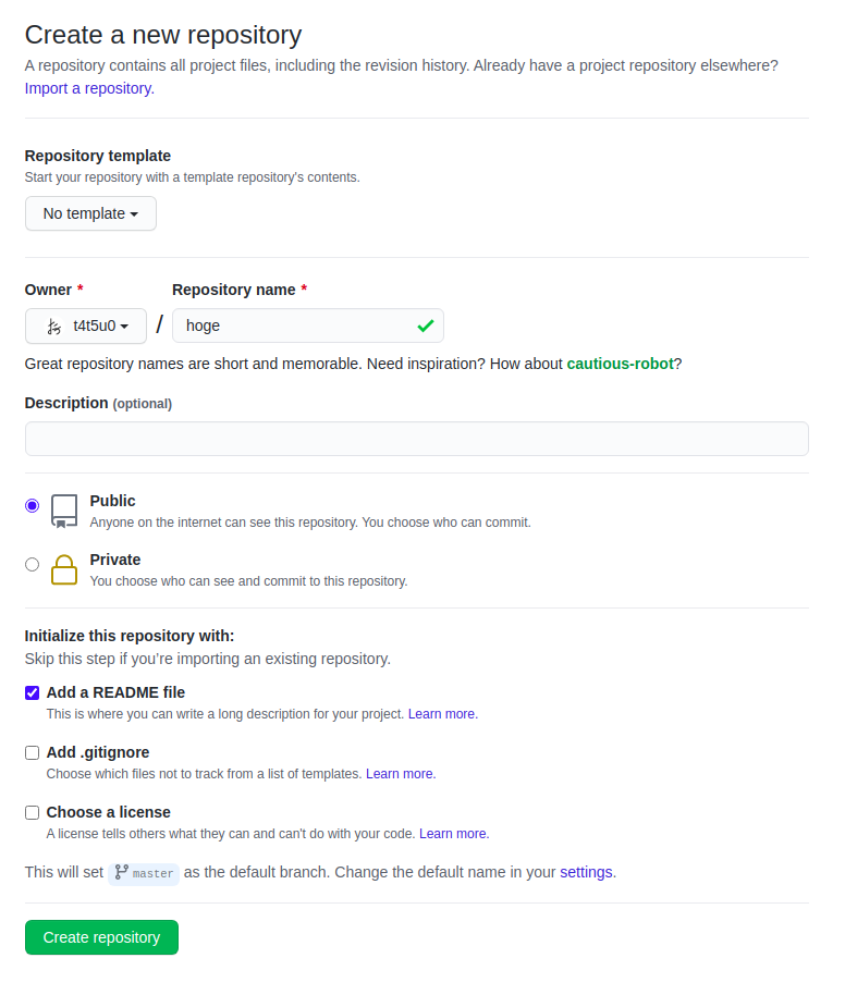 最後に README.md を設定します.README はリポジトリのトップページに設定されるので,ここに色々リンクを置くと便利になります.