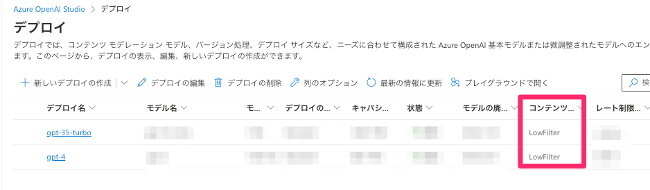 今回はデプロイ済みのモデルのコンテンツフィルターを変更する