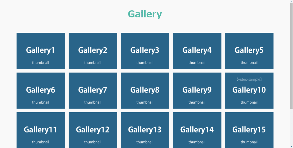 - サムネイル一つあたりのギャラリー表示は「静止画: 1~5枚、動画: 1つ」の制限あり ※各所調整すれば制限変更可能