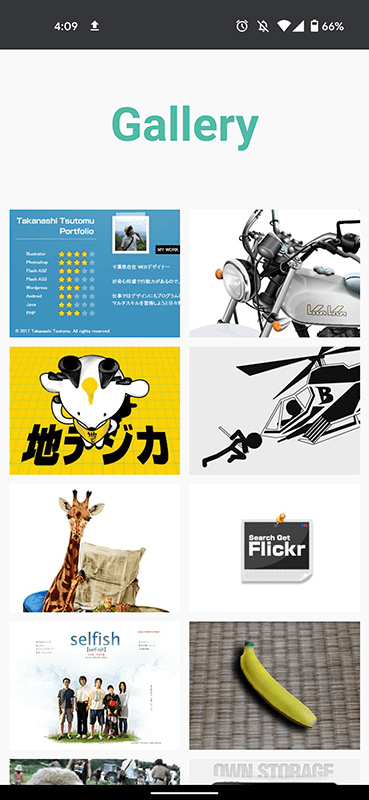 このGitHub上の「Nuxt.js_SPA-PWA_Gallery」をクローン or ダウンロード後、コマンドプロンプト(Windows) or ターミナル(macOS)で必要コマンドを実行すれば上図のような画面が確認可能(なハズ。。)