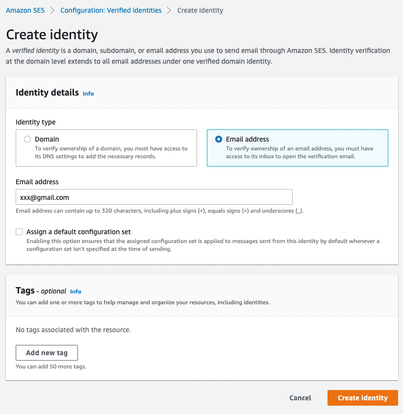 - AWSのアカウントでSESのコンソールにアクセスできること