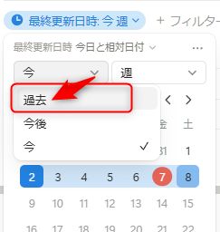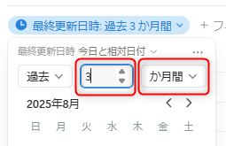 🥐[Notion]過去3か月間以内に更新されたものだけ表示2025/11/08に公開Notiontechデータベースで指定した期間内に更新されたページだけフィルターする手順。 プロパティを追加 > 最終更新日時 フィルター> 最終更新日時 今日と相対日付 過去 3か月間(任意の期間) Discussion