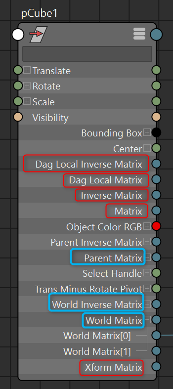 〇〇 Matrixという名前のアトリビュートからそれぞれの変換行列を取得できる。
