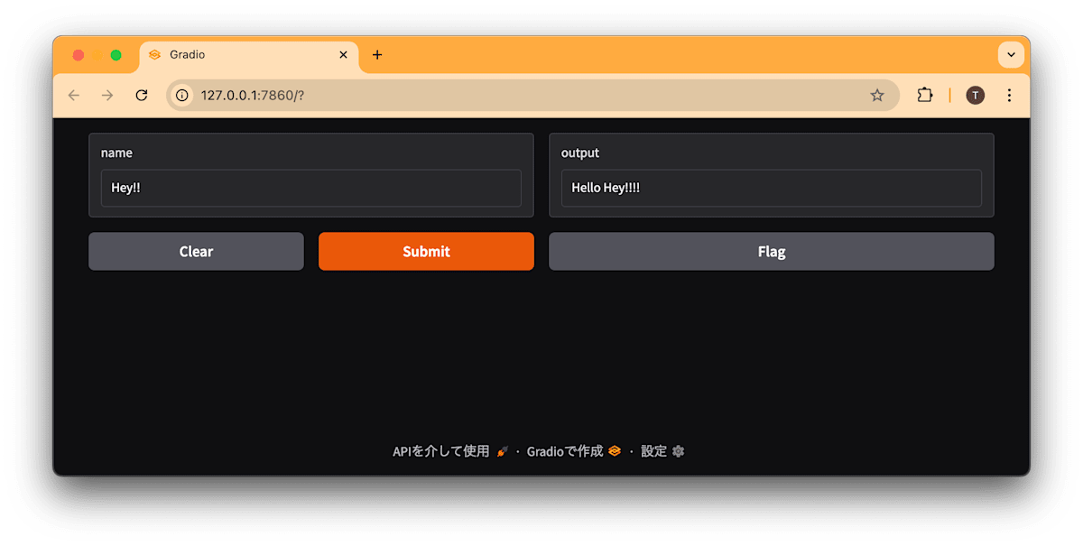 gradio を使うと、えらい簡単にAIのプロトタイピングができるんだな。