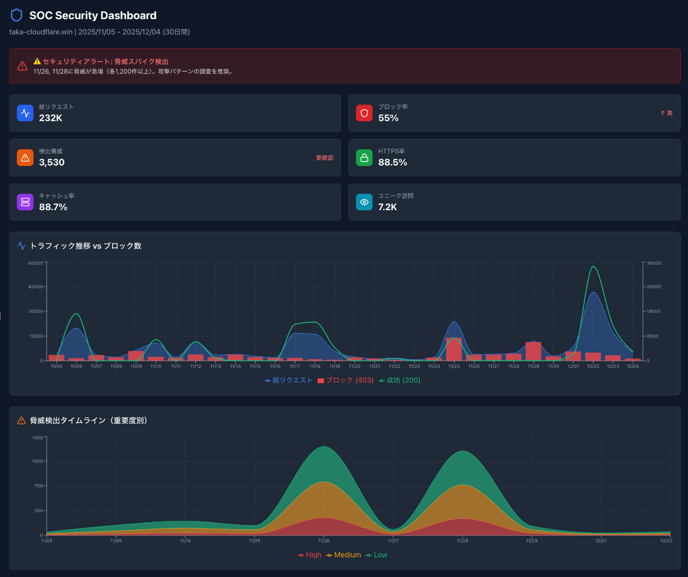 「直近1ヶ月のtaka-cloudflare.winのHTTPリクエストを分析して」