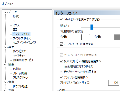 - プレーヤー > インターフェース > 検索でプレビュー機能を使用する にチェック