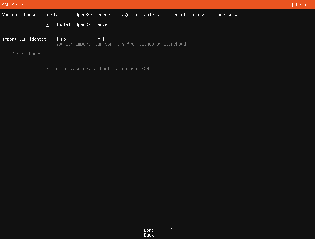 SSHは起動しないといろいろ手間なので起動する。SSH鍵のインポートは後で。