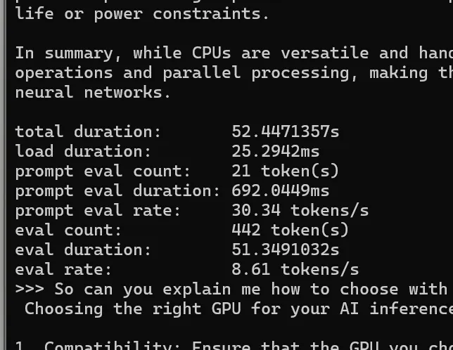 理由はよくわからないですが、Windows環境の場合、WSLなどを介してOllamaを動かすので、その仮想化レイヤーのオーバーヘッドはパフォーマンス劣化の要因に含まれていそうです。