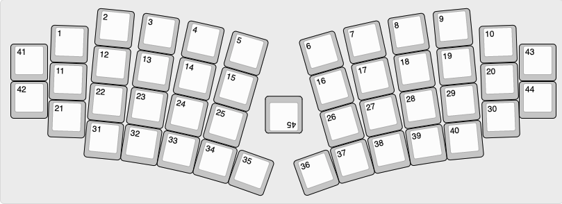 Gherkinでオーソリニア(格子配列)の指の移動が最小限で済む(縦方向に指を移動させるだけで文字が打てる)良さを踏まえつつ、Alice配列の手の角度を自然に置けるニュアンスを取り入れるべく、このようなレイアウトになりました。