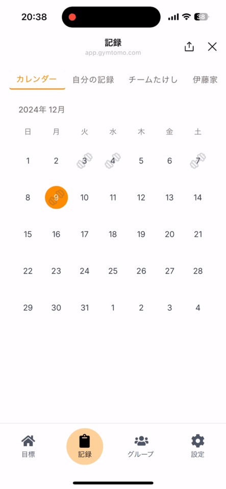 | 週の目標結果 | みんなの記録 | グループに招待 |