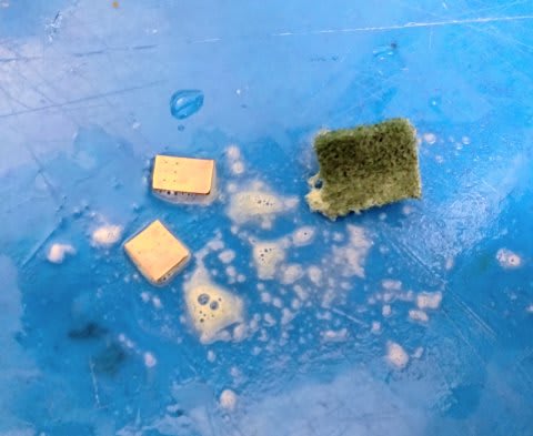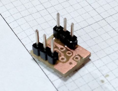 さて今回は米粒を扱うので、そのままじゃブレッドボードにも乗りませんしプログラマーとの接続もままなりません。ですのでまずはこれを作ります。