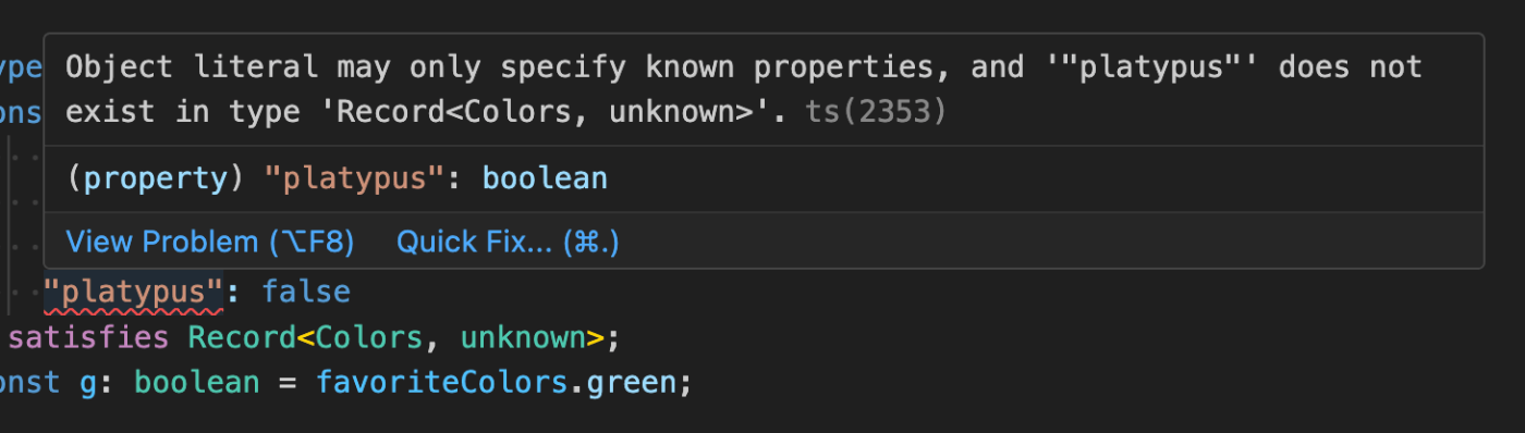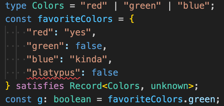 } satisfies Record<Colors, unknown>;