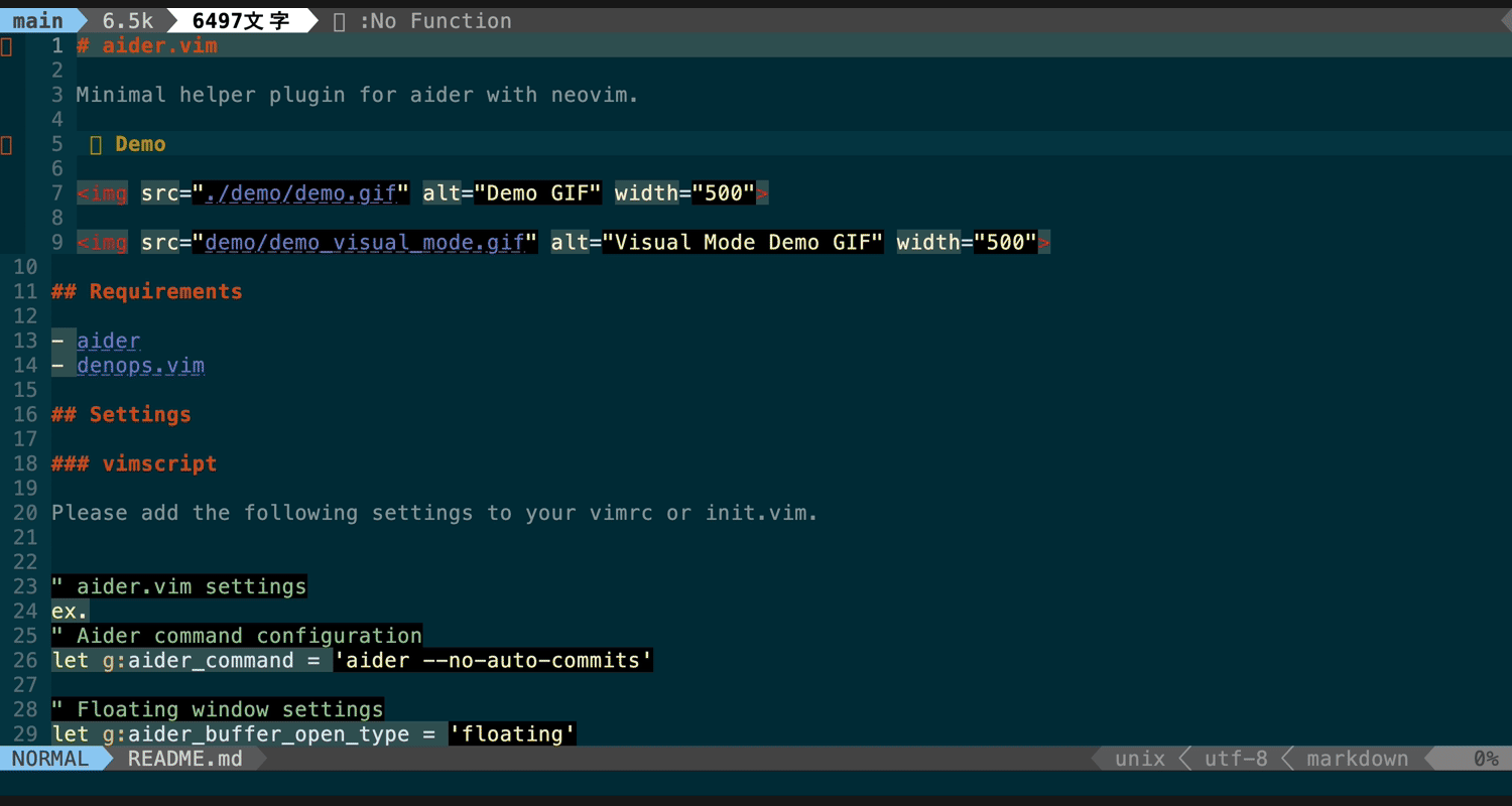 aider.vimは、NeoVimからaiderを利用するためのプラグインです。