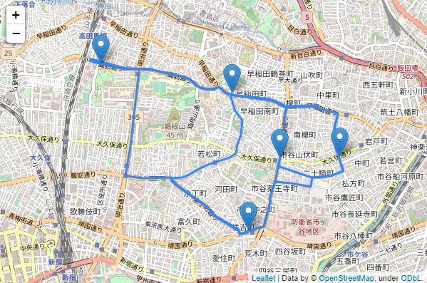 # 牛込柳町あたりの5地点 (GoogleMapからコピペ)