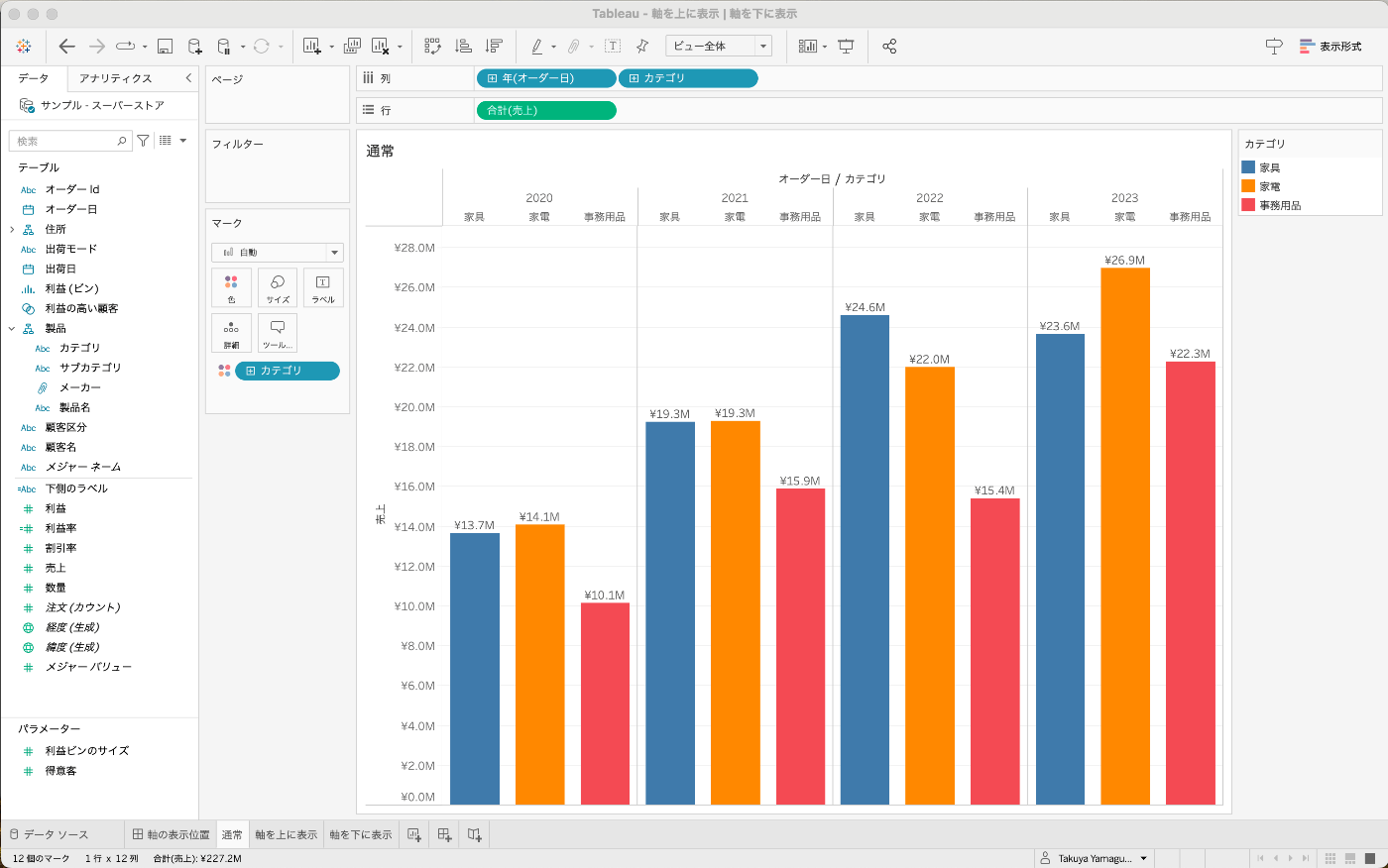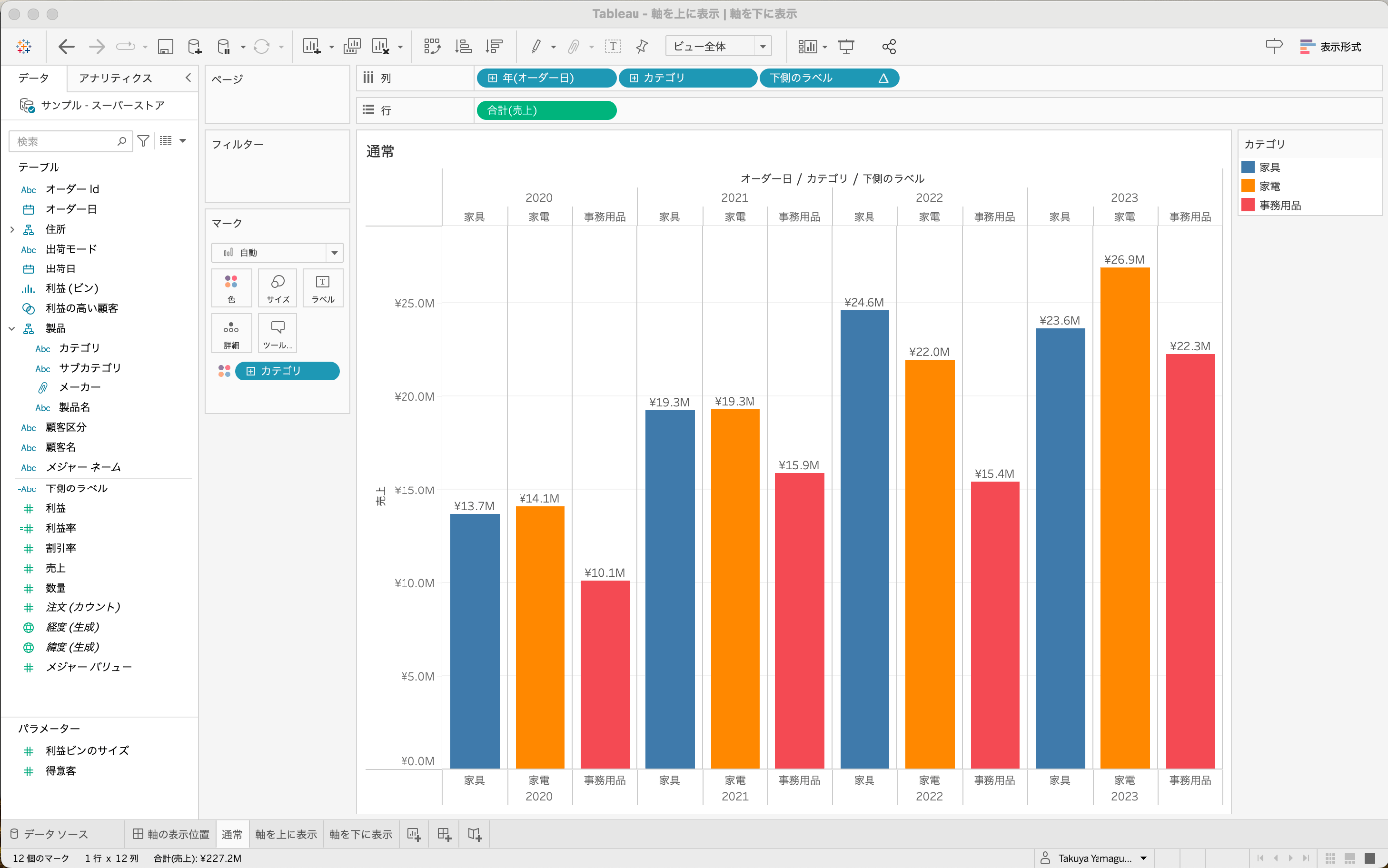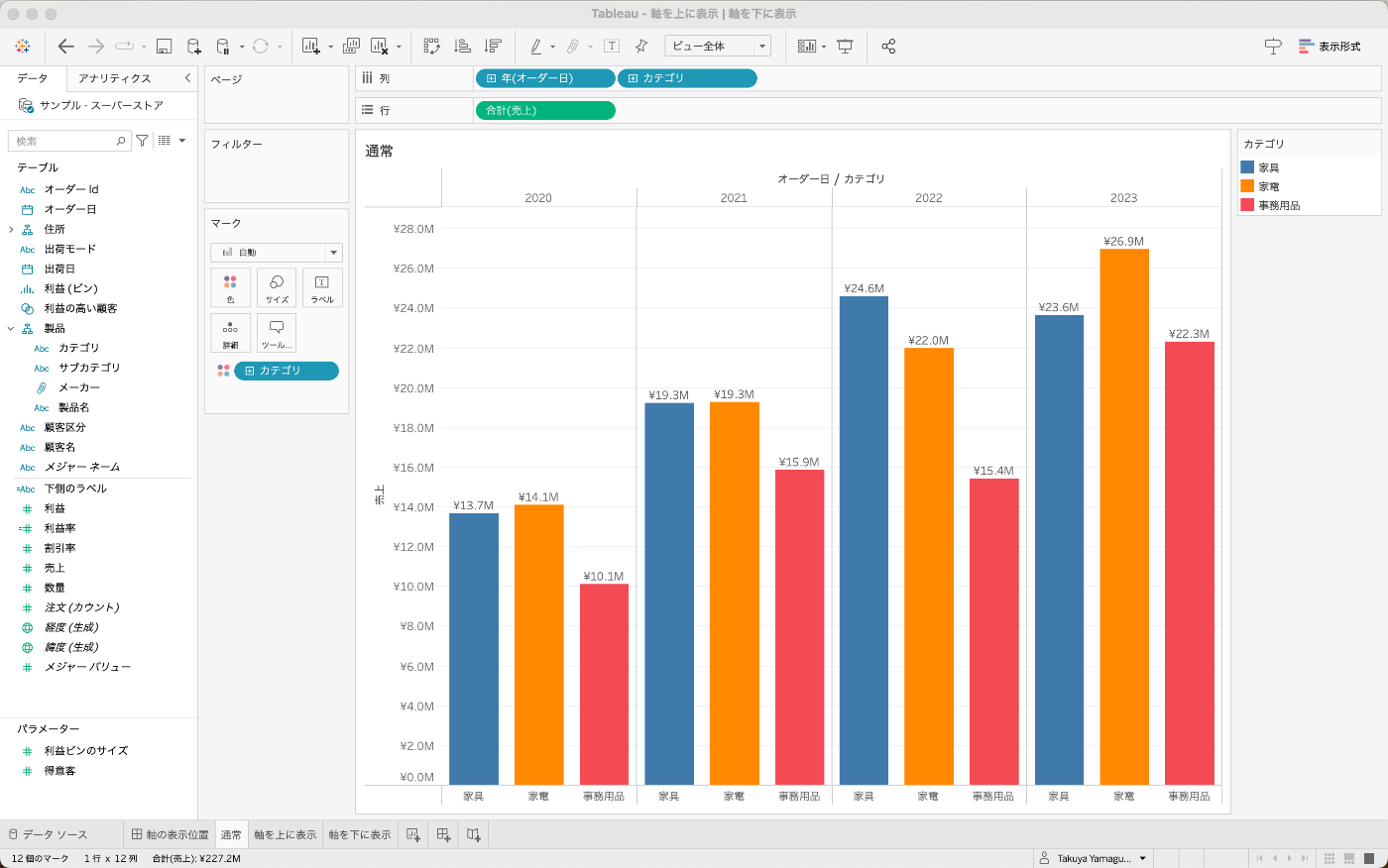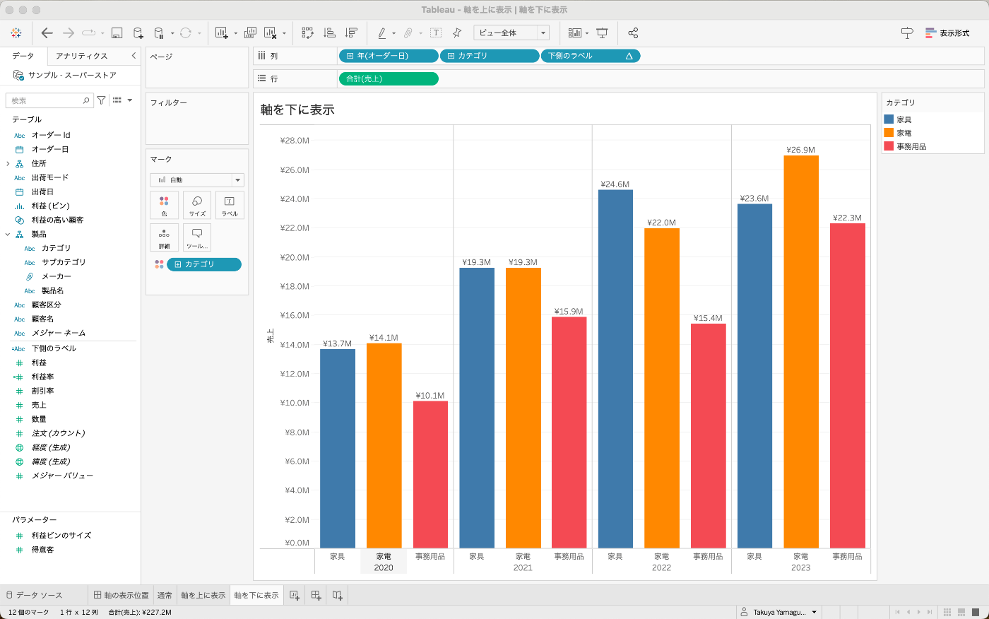 Tableau 軸を上に表示 | 軸を下に表示する方法